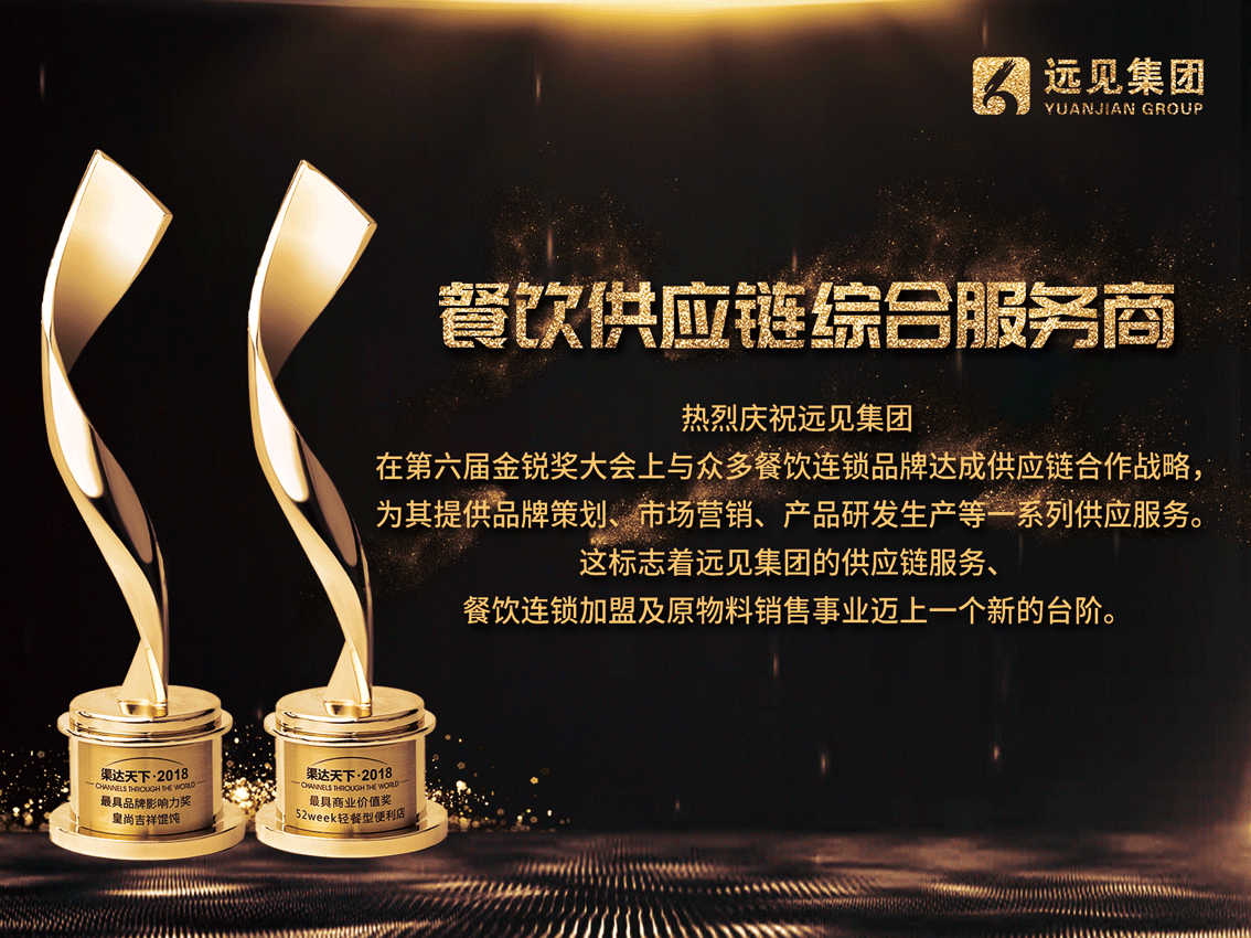 2018年12月18日,由遠(yuǎn)見集團(tuán)和渠道網(wǎng)絡(luò)商學(xué)院聯(lián)合主辦的“2018渠道生態(tài)共享大會暨第六屆金銳獎頒獎盛典” 在杭州圓滿落幕,各大獎項(xiàng)獲獎及入圍品牌盛大揭曉!遠(yuǎn)見集團(tuán)斬獲2大獎:52week便利店榮獲最具商業(yè)價(jià)值獎,皇尚吉祥餛飩榮獲最具品牌影響力獎!