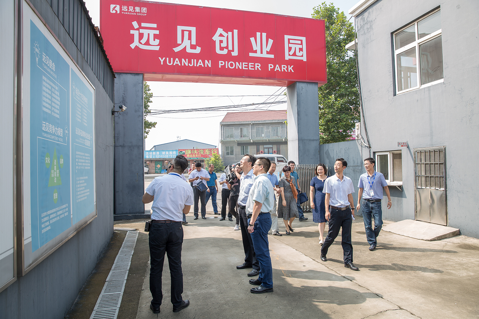 王書記一行正在聽取遠(yuǎn)見創(chuàng)業(yè)園文化理念和發(fā)展歷程的介紹。