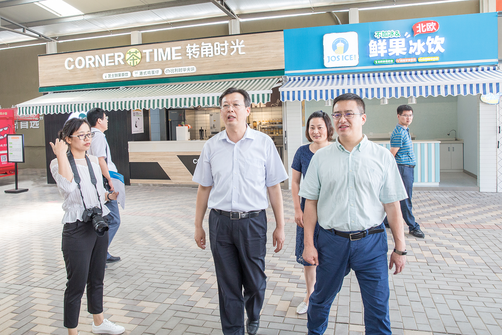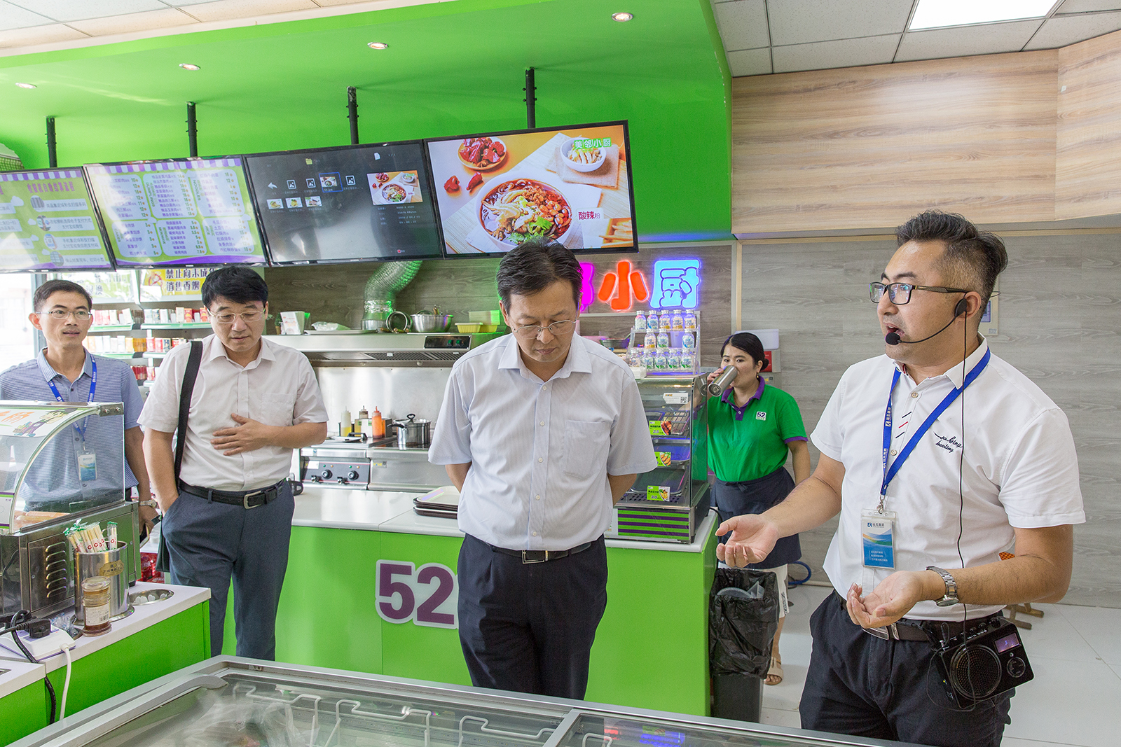 王書記一行來到小廝生活O2O體驗區(qū),調(diào)研指導(dǎo)小廝外賣、小廝移動餐車和小廝洗車創(chuàng)業(yè)項目。