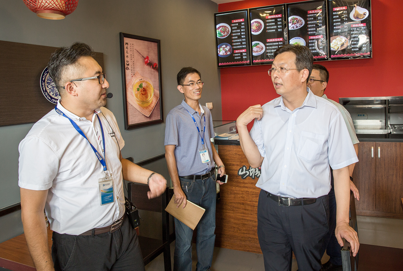 來到創(chuàng)業(yè)項目孵化區(qū),調(diào)研遣唐拉面、華夫班特咖啡、山城渝味重慶小面等美食創(chuàng)業(yè)項目。