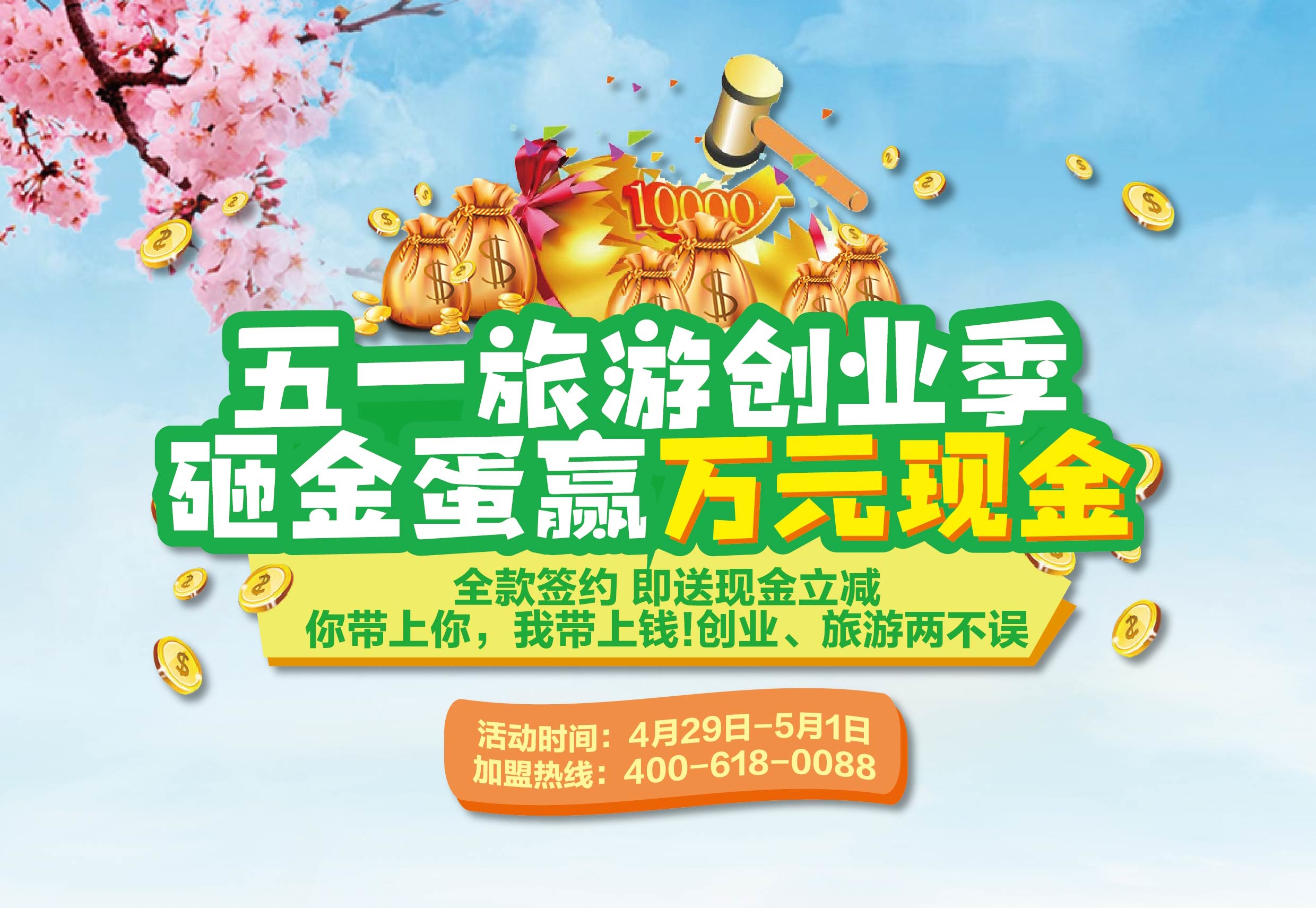 如果您有創(chuàng)業(yè)的想法,不妨來青島總部考察一下,所謂眼見為實(shí),確認(rèn)過實(shí)力才更放心。在五一旅游期間我們推出重磅活動(dòng),凡是全款簽約的加盟商都有機(jī)會(huì)參與砸金蛋活動(dòng),獲得2000-10000不等現(xiàn)金獎(jiǎng)勵(lì)。